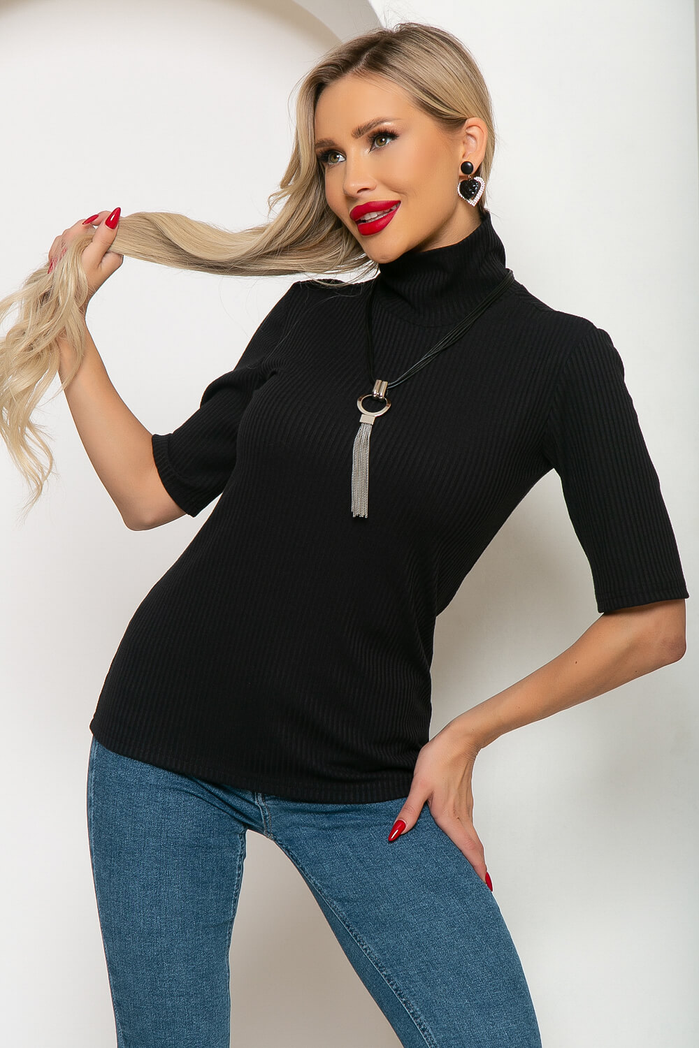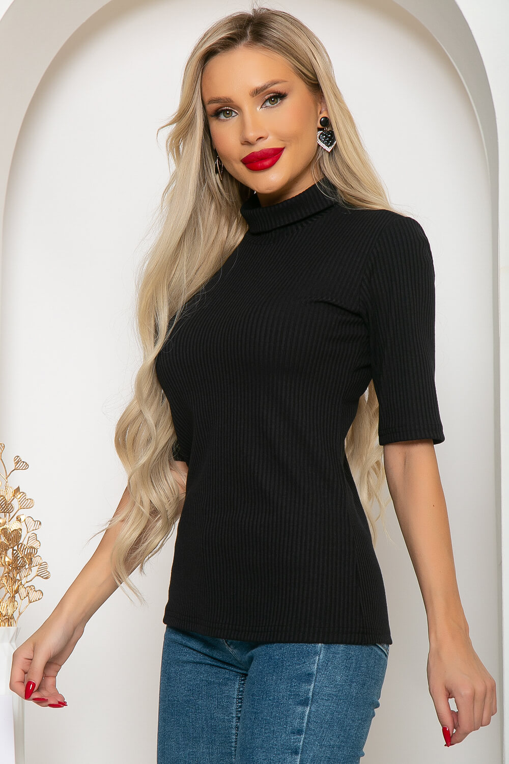 Джемпер в классическом чёрном цвете с воротником стойкой позволит создать стильные повседневные или строгие классические образы. Укороченный рукав позволяет комфортно сочетать его со вторым слоем, будь то жакет, кардиган или верхняя одежда.
