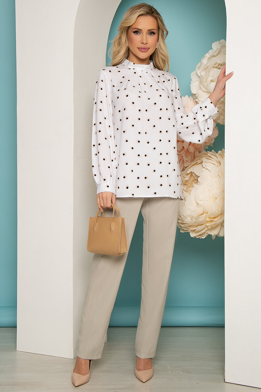 Базовая блуза женственного кроя из штапеля создана для нежных летних образов. Модель в классическом оттенке идеально вписывается в любую обстановку от офисных будней и до праздничных мероприятий. Воротник-стойка, сзади застёгивается на петлю-пуговицу, по переду защипы. Блуза свободного кроя, рукав втачной, длинный, на манжете.