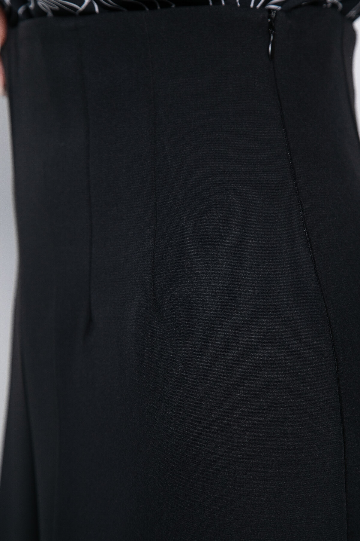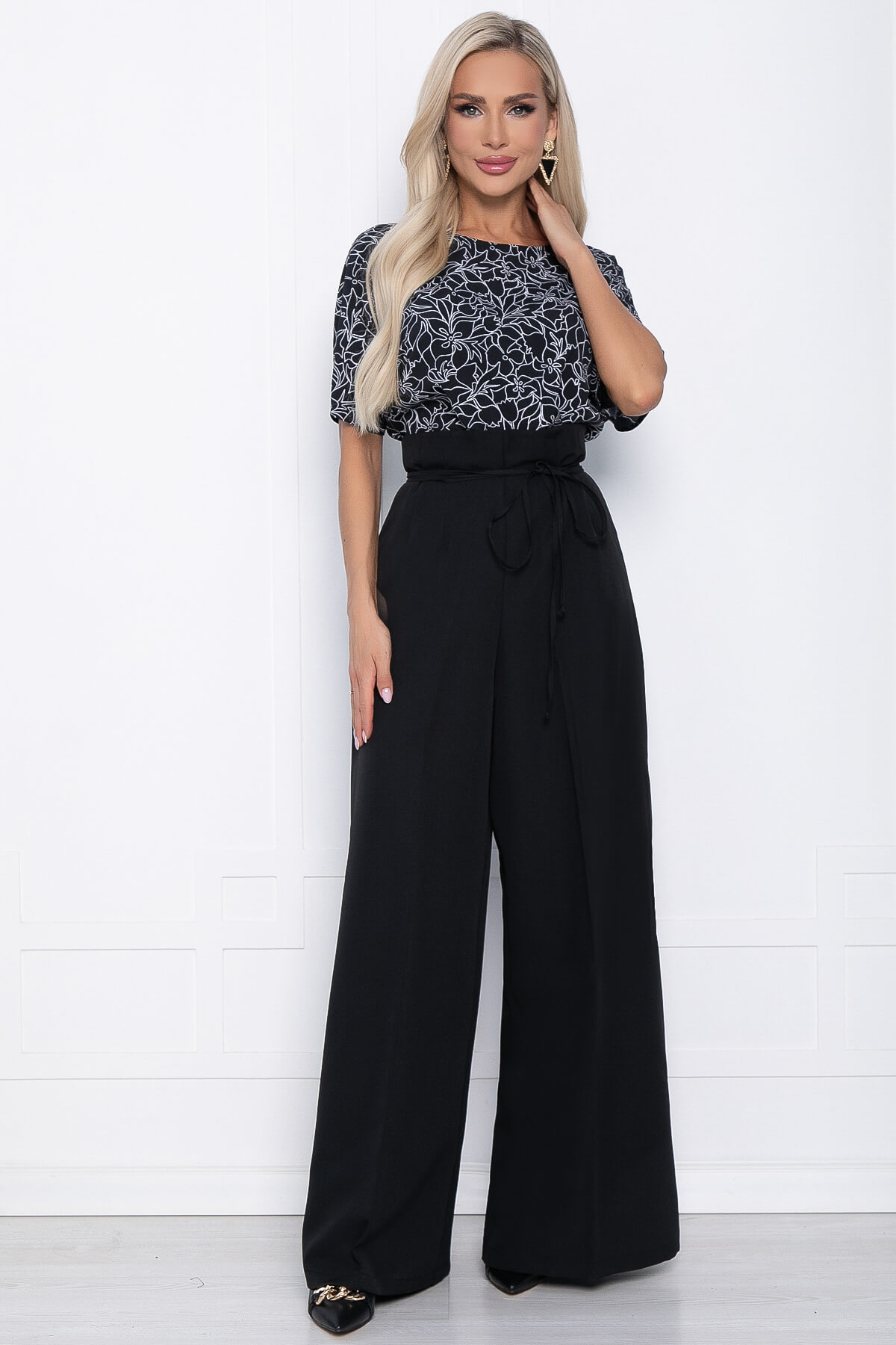 Широкие брюки палаццо А-силуэта с обработанной обтачкой и с застежкой на потайную тесьму-молнию в боковом шве. Брюки имеют плотное прилегание по талии и усиленное расширение от бедра к низу. На передних и задних половинках брюк расположено по 2 вытачки с отделочными строками. Шикарная модель, которая комбинирует в себе классические брюки и одновременно современные и стильные штаны с сексуальной шнуровкой на талии — все зависит от подобранного верха.