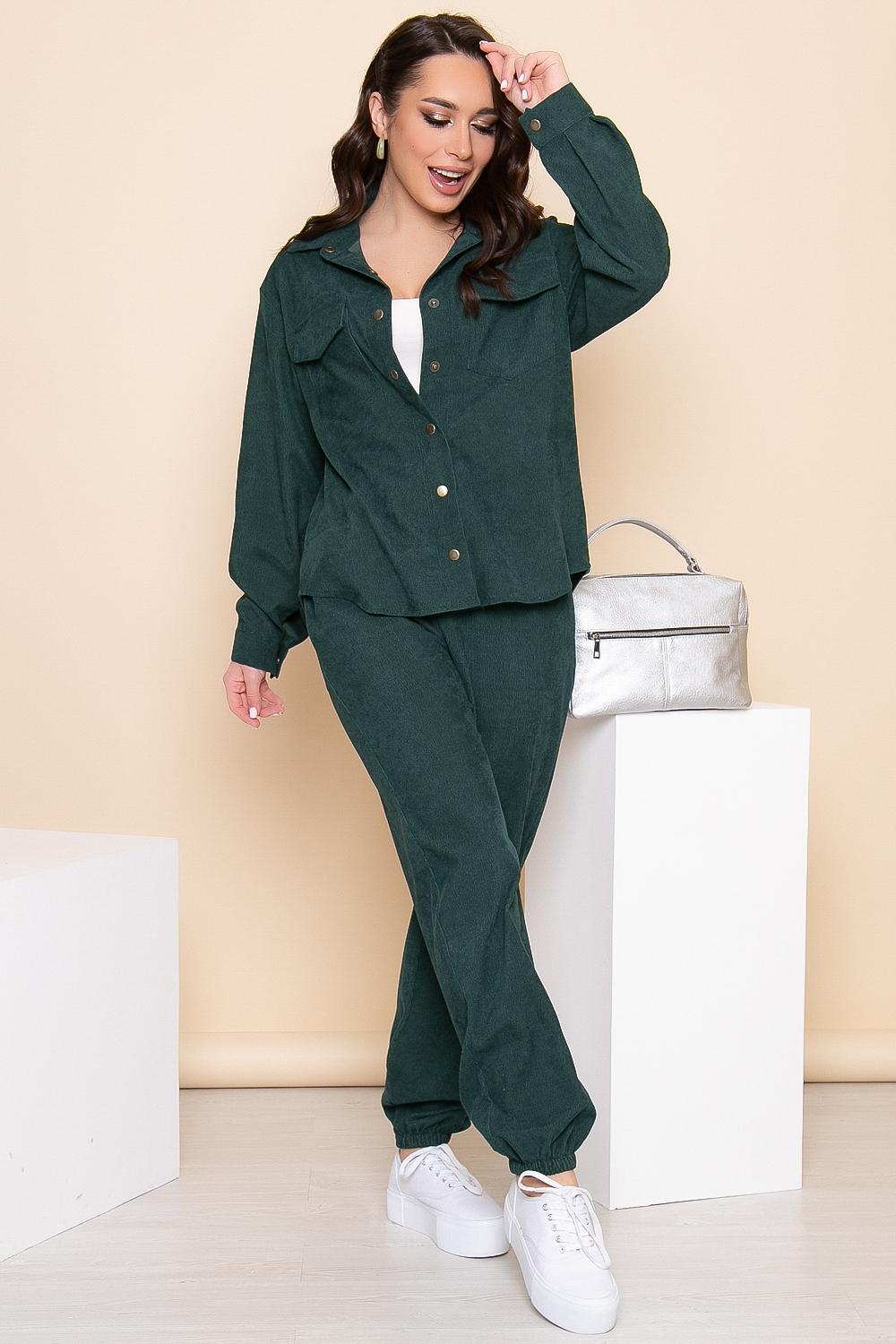 Костюм из вельвета - необычное решение для Вашего модного гардероба! Брюки-джоггеры настоящий маст-хэв 2022 года! Для сохранения тепла в прохладную погоду, наденьте под рубашку топ или футболку. Стильно смотрится с туфлями на высоком каблуке, для более городского образа - подойдут кроссовки или лоферы. Брюки на резинке, в боковых швах расположены удобные карманы, низ так же собран на резинку. Рубашка свободного кроя с отложным воротничком, на кнопках, на груди функциональные карманы с клапаном. Низ рубашки закруглен, спинка удлинена. Рукав длинный, втачной, манжет застёгивается на кнопку.