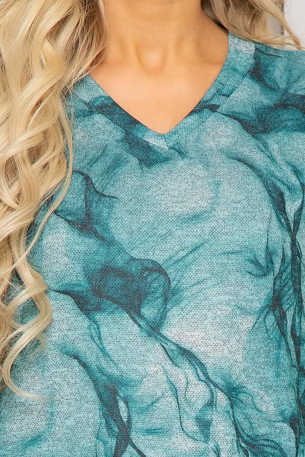 Трикотажное платье А-силуэта средней длины прекрасно подойдёт для создания яркого повседневного или офисного образа. Втачной рукав три четверти позволяет дополнить образ жакетом или кардиганом. В комплект входит пояс из основной ткани.