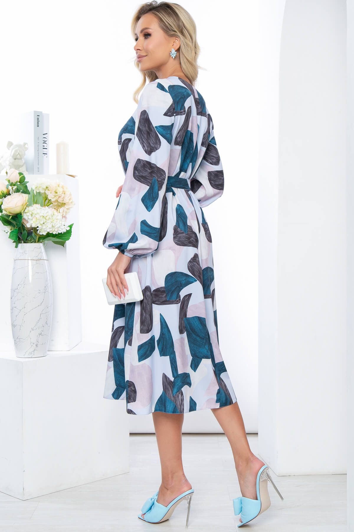 Струящееся платье идеально подчёркивающее Вашу женственность. Платье А-силуэта с красивым V-образный вырезом горловины красиво очертит зону декольте. Красивый пышный рукав на резинке. Пояс из основной ткани входит в комплект. Платье без подкладки.