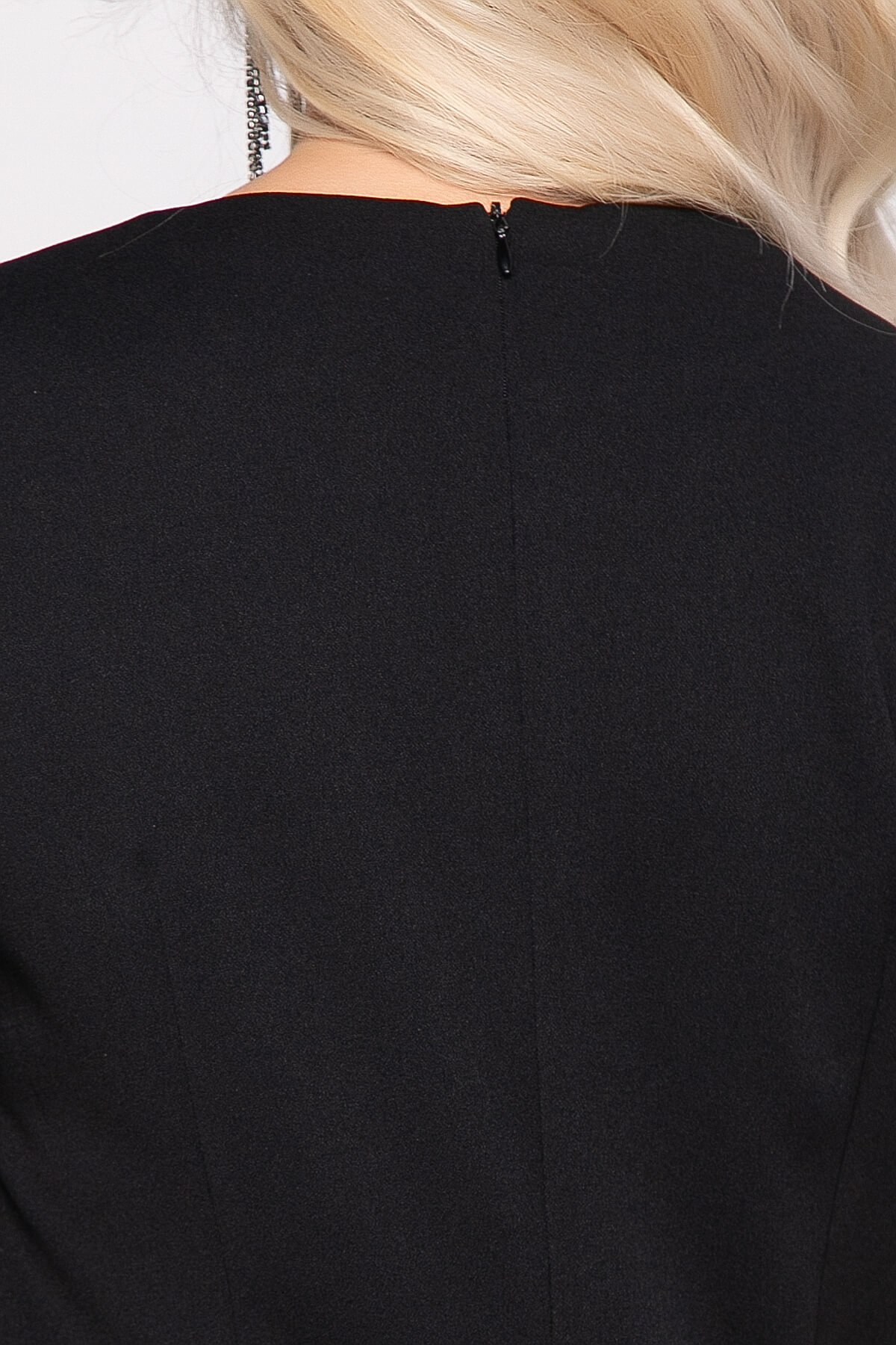 Элегантное платье с декоративной сеткой с принтом выглядит сдержано, но в то же время празднично. акцентом данной модели являются короткие, втачные рукава, которые выполнены из сетки. По переду изделия - кокетка. По низу изделия разрез.