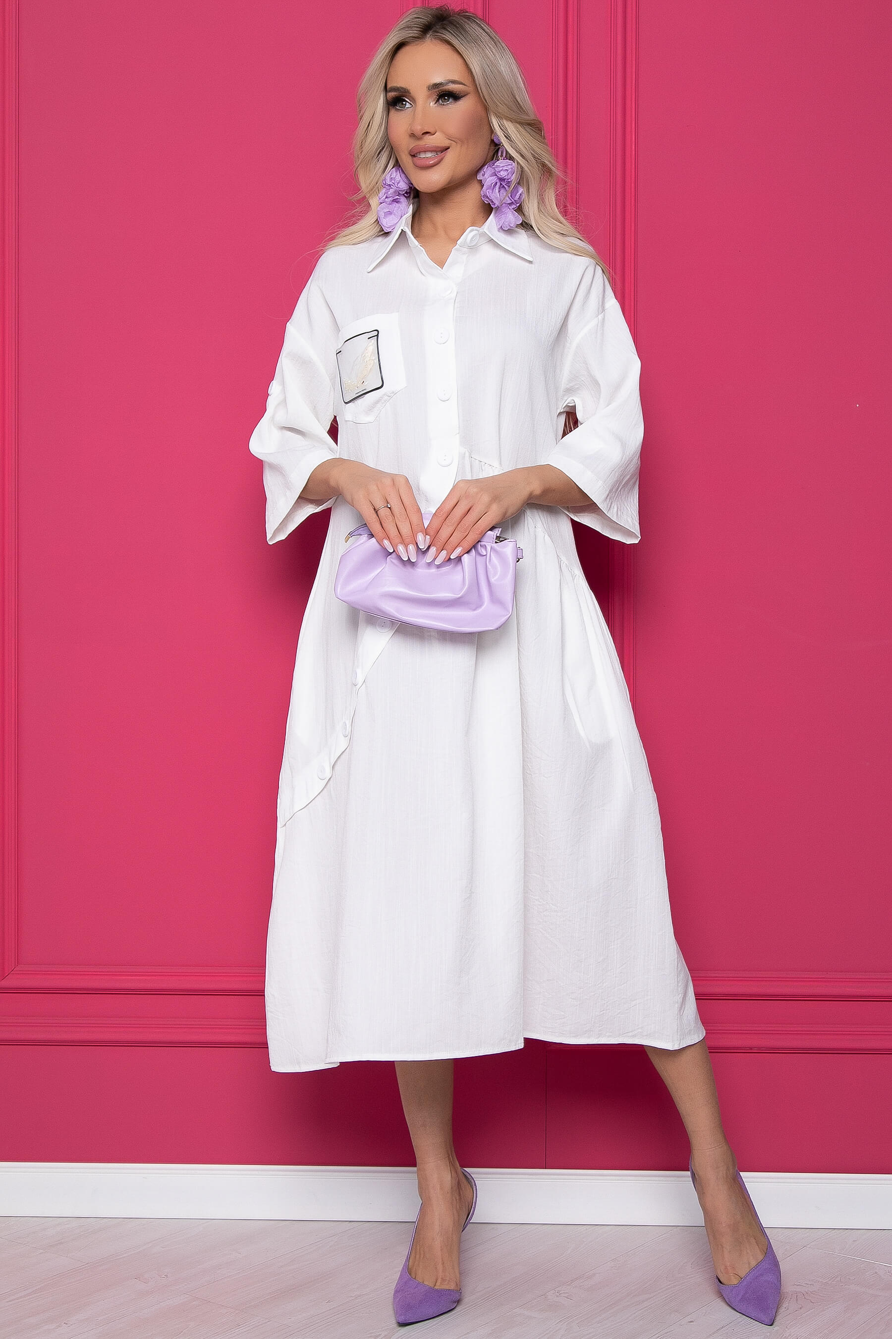 Стильное платье придаст Вам привлекательности, при этом образ получится достаточно сдержанным и комфортным. Платье будет отлично смотреться даже без аксессуаров, украшает образ карман с декором. Рукав втачной со спущенным плечевым швом, длина - три четверти, подворачивается на пату. Функциональные пуговицы только в верхней части платья, по юбке присутствует имитация застежки.