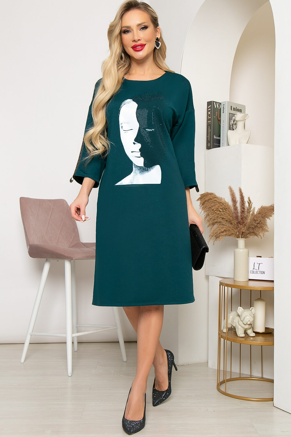 Платье-туника в стиле oversize подойдёт для создания комфортного повседневного образа. По передней части платья выполнена аппликация, благодаря которой эту модель можно использовать для создания вечернего образа. Платье свободного кроя, средней длины, линия плеча спущена.