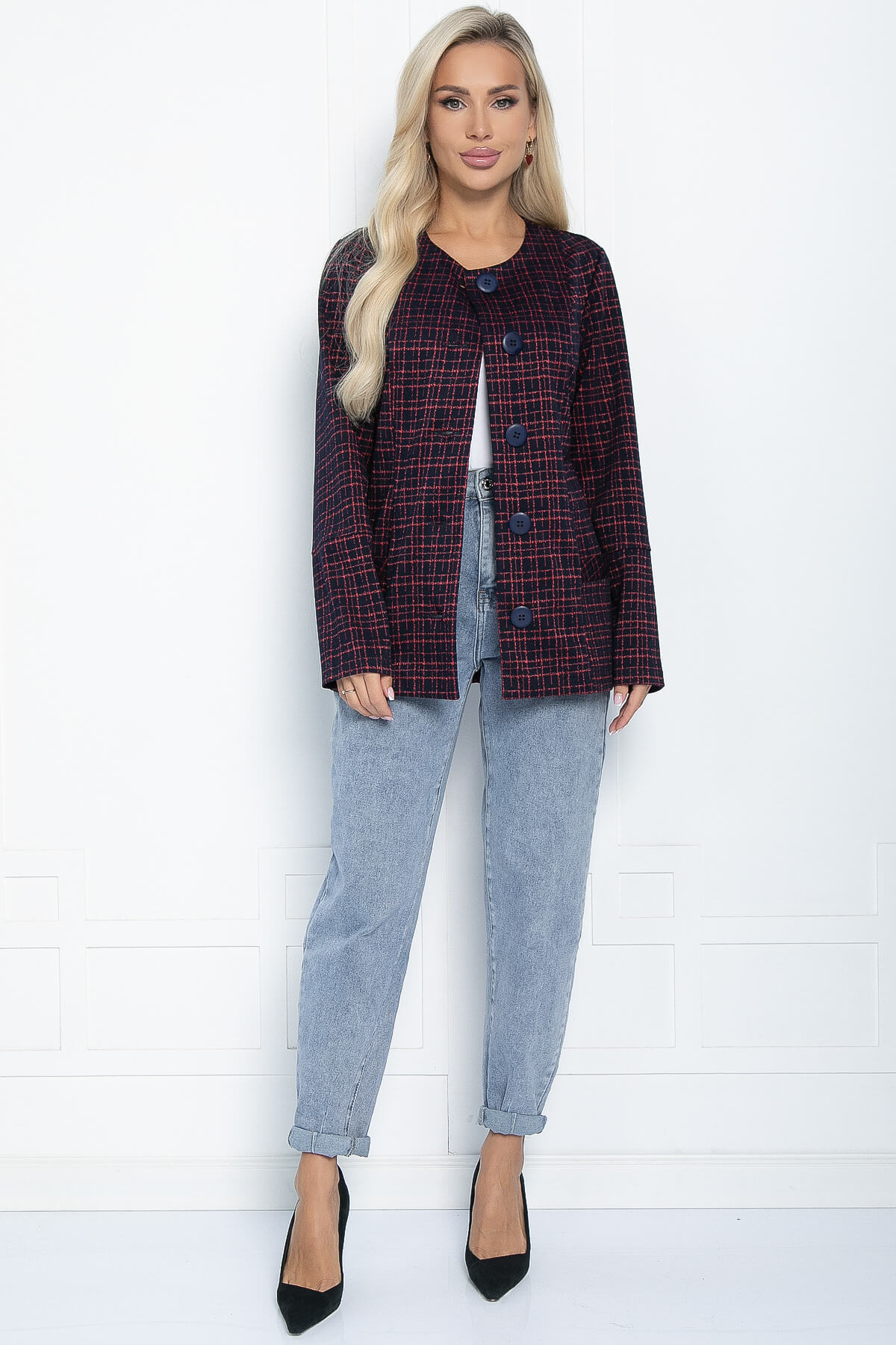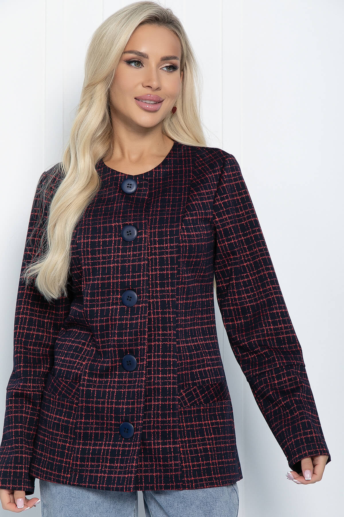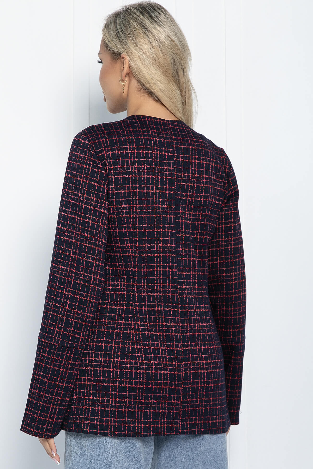 Бордовый трикотажный жакет в клетку — это универсальный предмет гардероба, который подойдёт для дневного и вечернего образа. Он будет уместен в офисе, школе, на вечеринке. Этот жакет идеально дополнит ваш образ в прохладный период.