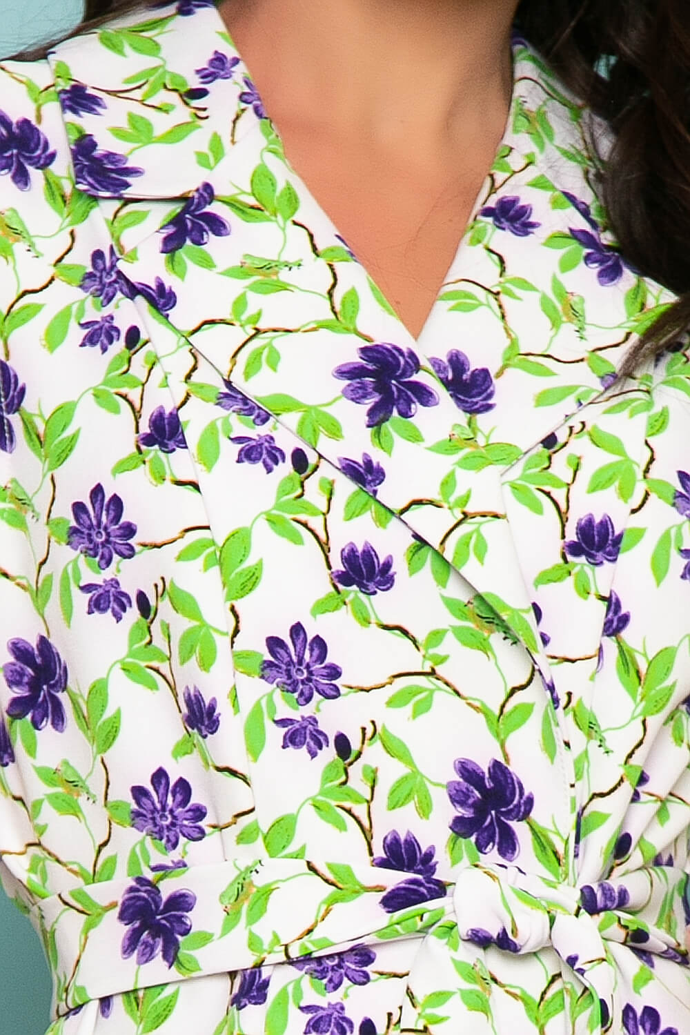 Жилет без рукавов с летним принтом. Модель прилегающего фасона, на запахе, завязывается на пояс. Отложной английский воротник, формирует V-образный вырез, который визуально корректирует фигуру. Изделие без подкладки.
