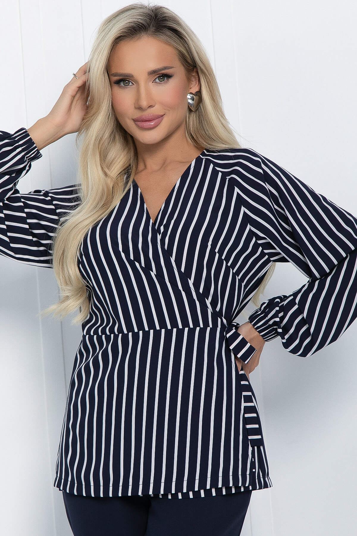 Блуза на запах станет любимой в вашем гардеробе - ее легко сочетать с брюками джинсами или юбкой, можно надевать под пиджак или жакет. У нее приталенный силуэт, горловина блузки с элегантным V-образным вырезом, длинные рукава-реглан – придают блузке мягкость, воздушность и романтичность, позволяя своей обладательнице выглядеть нежно, женственно и невероятно привлекательно. Но в то же время блуза обладает определенной строгостью, что подойдет и для повседневных образов. По талии фиксируется поясом.